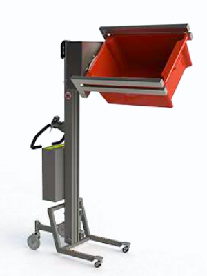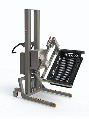 Mit Hilfe dieses Modells können Kisten/Boxen angehoben und durch eine nach vorwärts gerichtete Kippbewegung geleert werden.