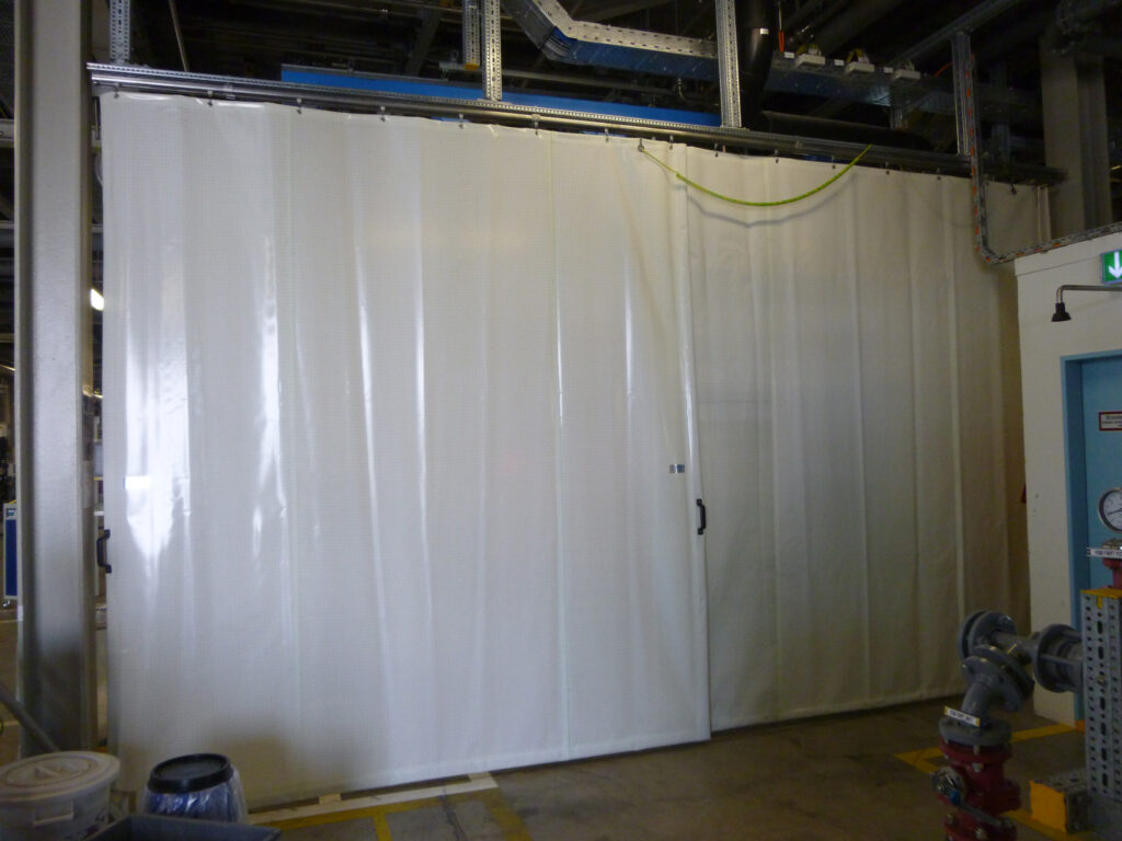 Diese Vorhänge für den Ex‑Zonen-Bereich sind schnell montiert. Sie sind flexibel und können ohne grossen Aufwand ergänzt oder anderweitig wieder eingesetzt werden; dies ohne dass Wände demontiert und wieder neu erstellt werden müssen.